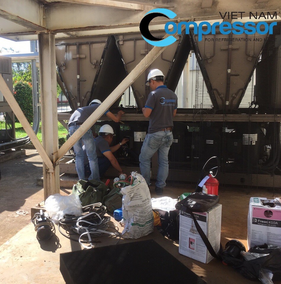LẮP ĐẶT MÁY NÉN LẠNH VÀ BẢO TRÌ HỆ THỐNG CHILLER NHÀ MÁY BAO BÌ CROWN ĐÀ NẴNG
