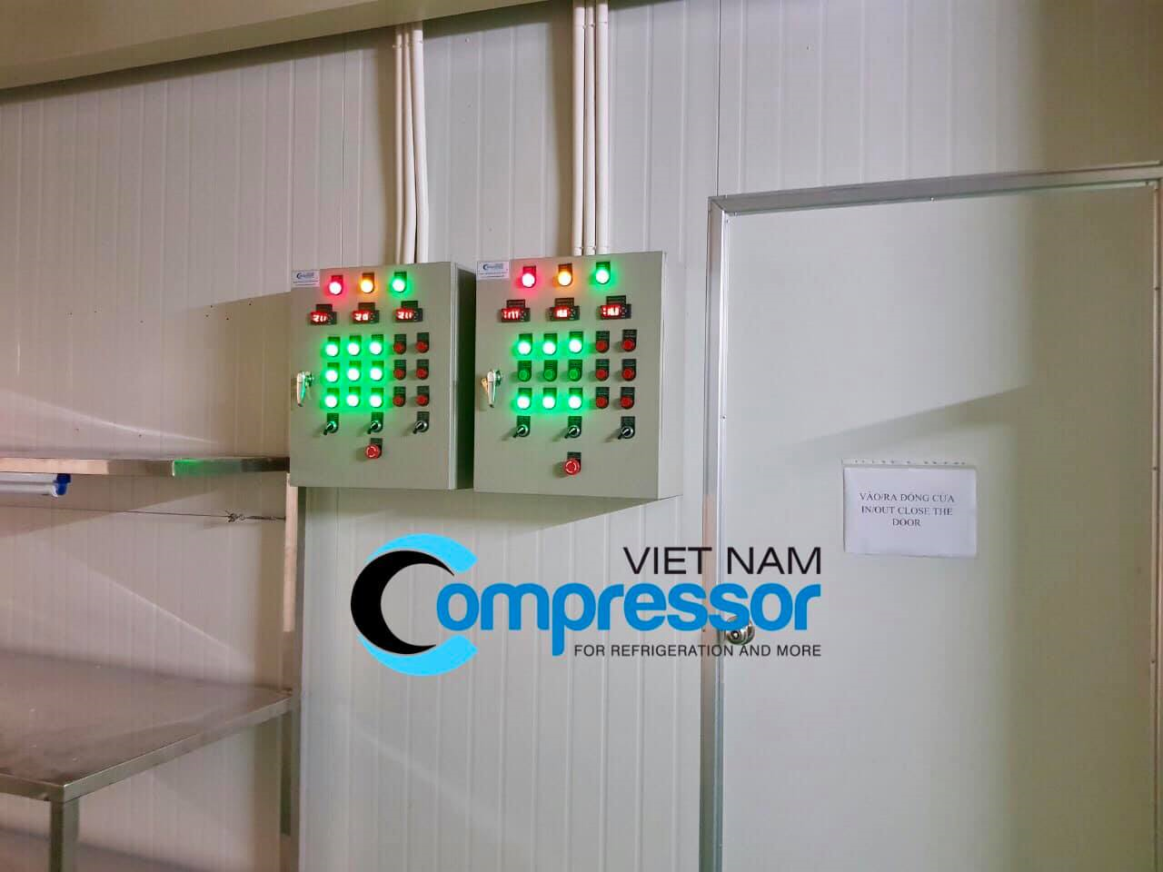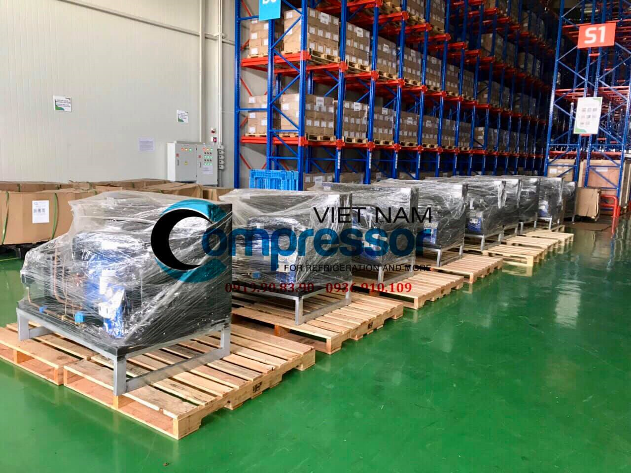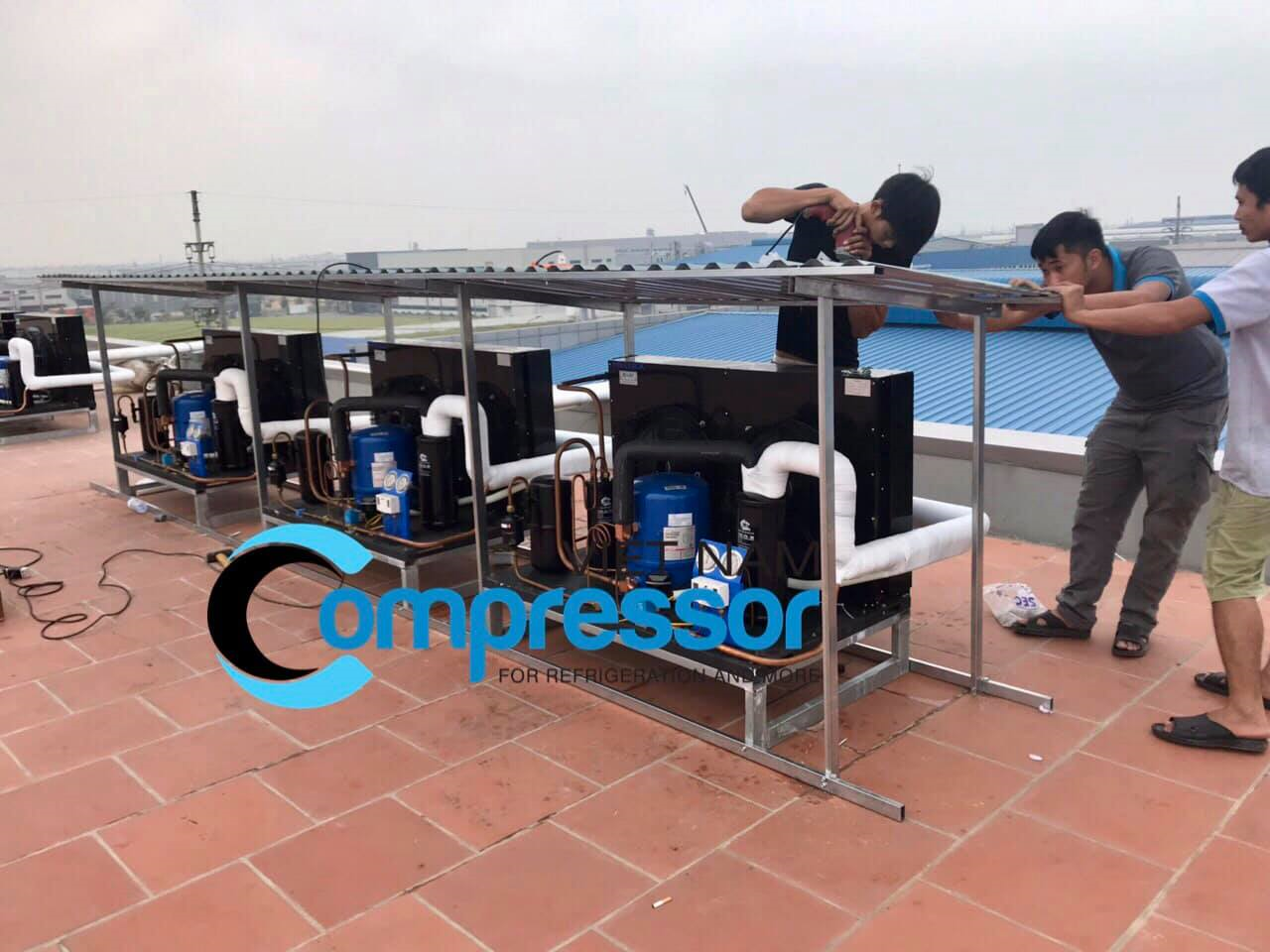 Hệ thống sử dụng 9 cụm máy nén dàn ngưng Danfoss (Pháp) 7HP do Công ty TNHH Compressor Vietnam thiết kế lên cụm hoàn chỉnh.