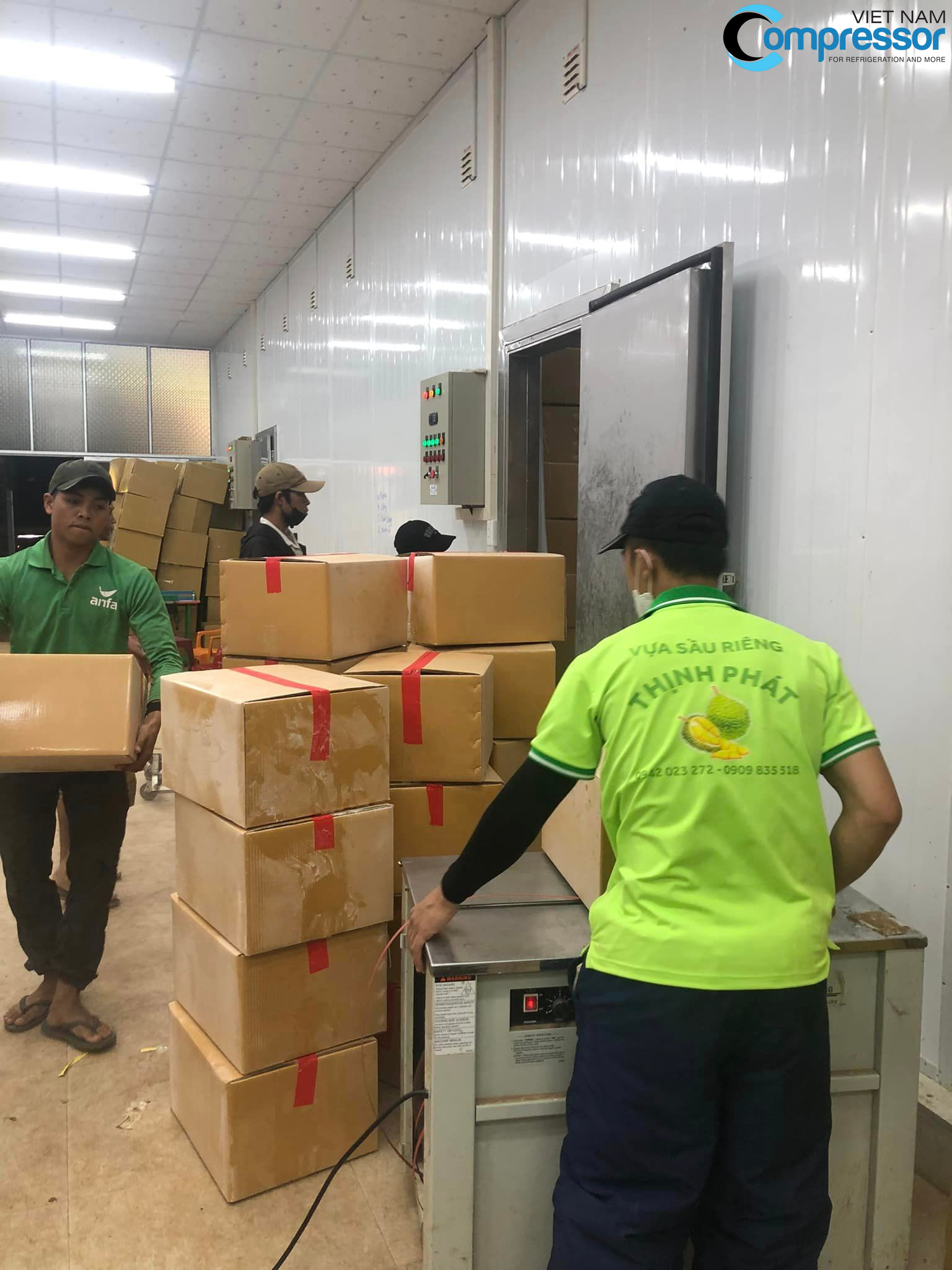 Hệ thống kho cấp đông sầu riêng tiêu chuẩn xuất khẩu do Công ty TNHH Compressor Việt Nam cung cấp và lắp đặt cho Vựa Sầu Riêng Thịnh Phát tại Krông Pắc, Đak Lak.