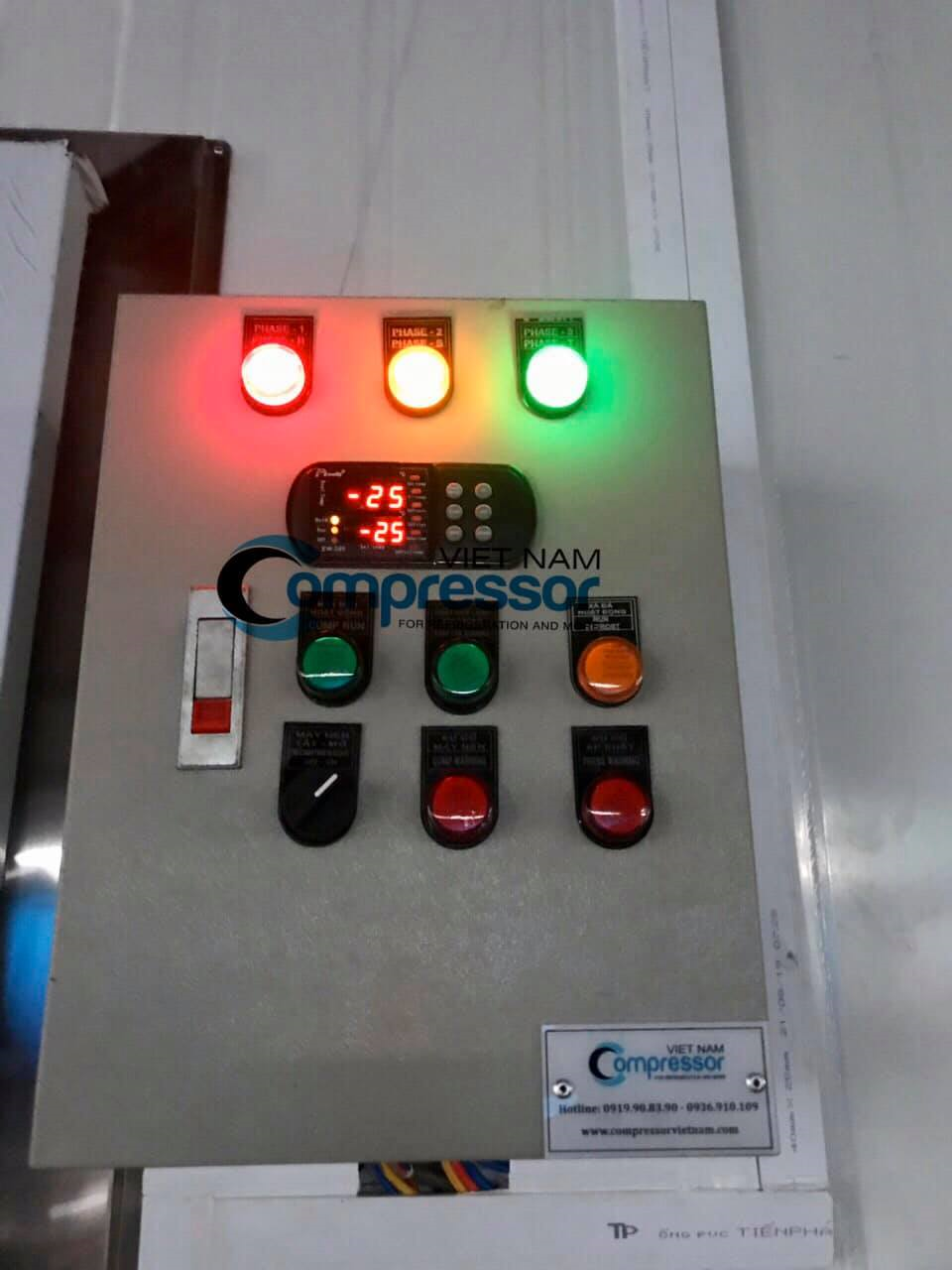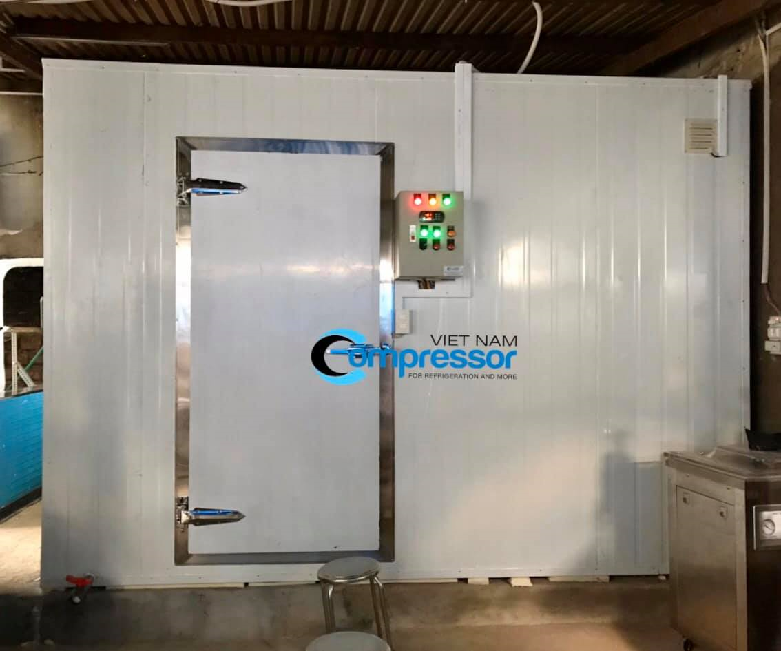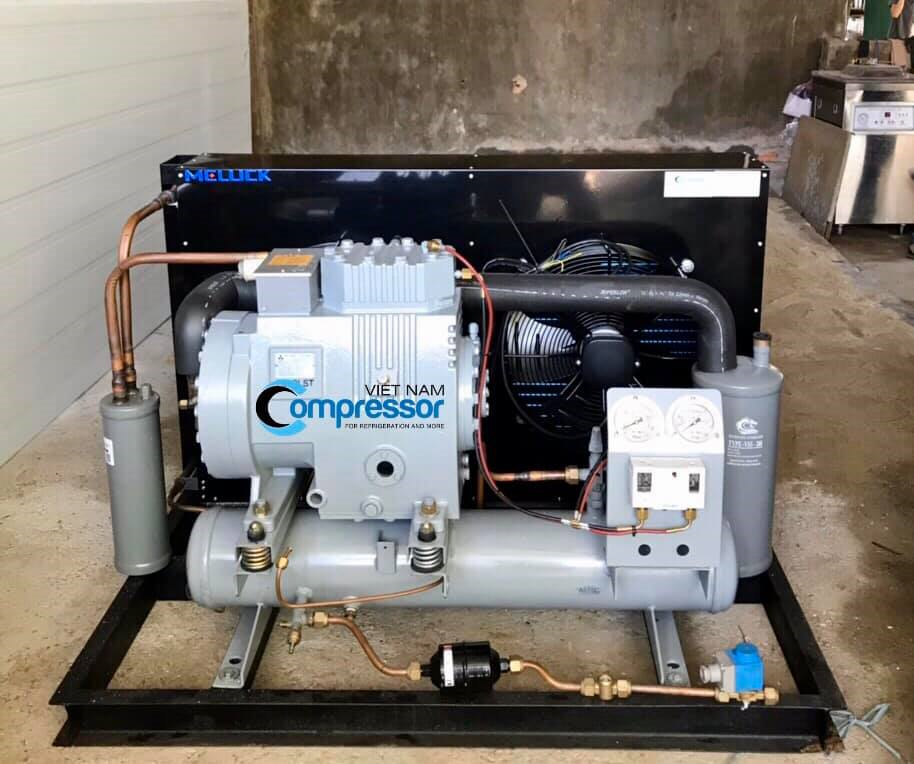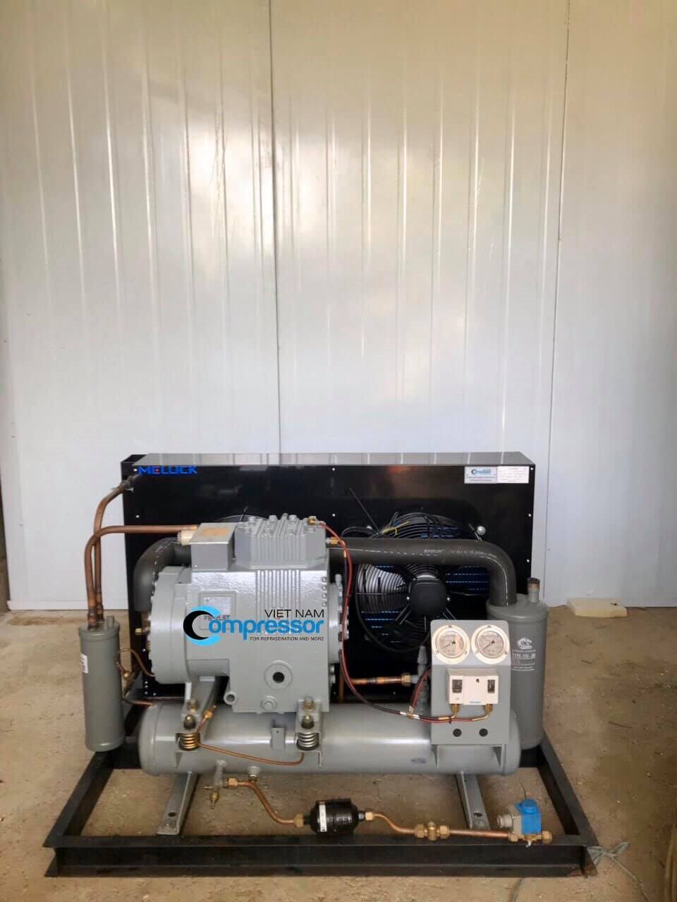 Sử dụng cụm máy nén dàn ngưng Mitsubishi-Meluck công suất 8HP và các thiết bị chính hãng khác, được lắp ráp lên cụm hoàn chỉnh tại Compressor Vietnam.