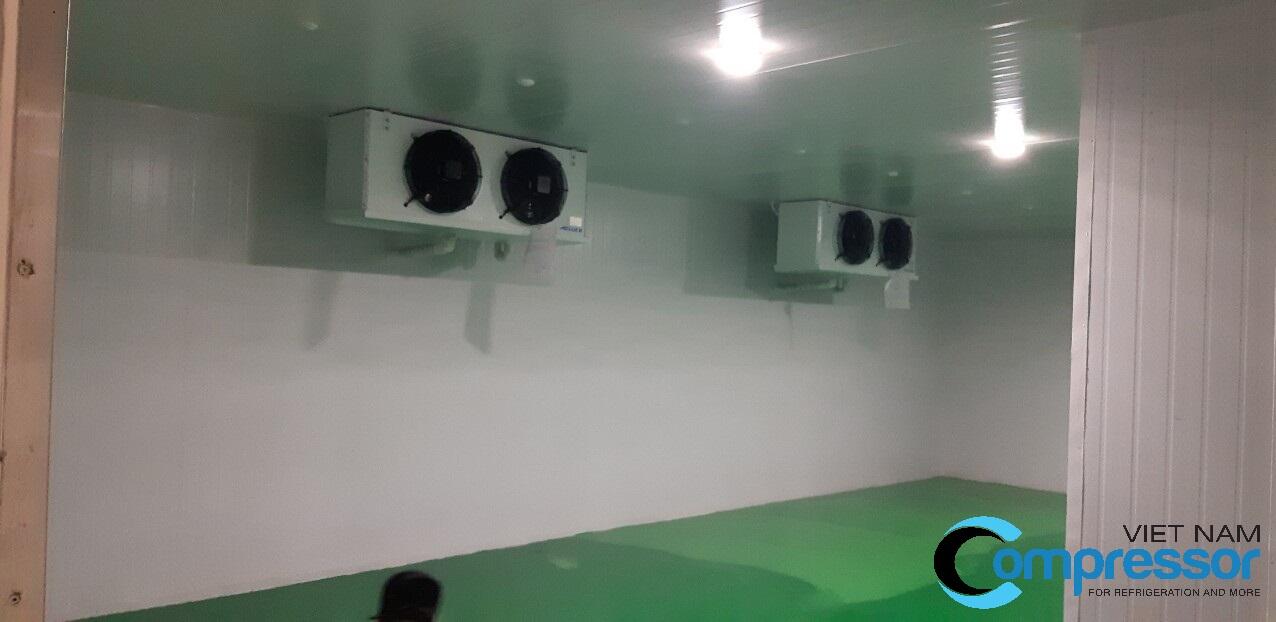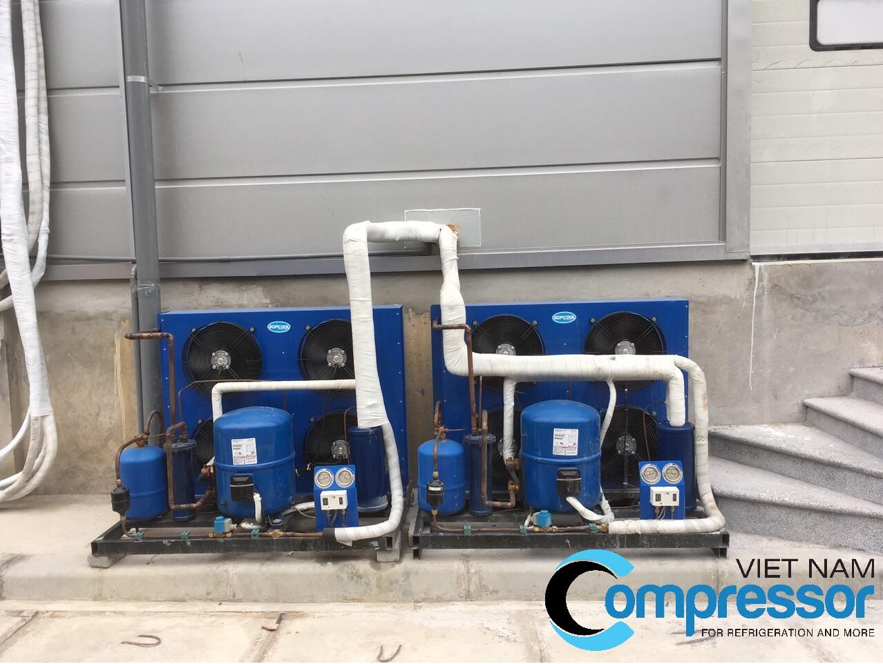 Hệ thống máy: 04 cụm máy nén dàn ngưng Danfoss Maneurop, công suất: 10-15HP.
